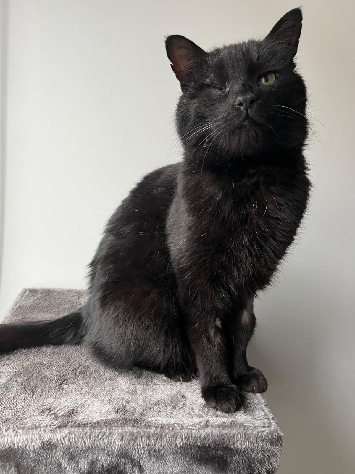 Hiya! Ik ben Mowgli - een 10 jaar oude zwarte parel. Ik zie eruit als een stoere, piraat met 1 oog, maar ben eigenlijk een chille, zelfzekere knuffelkat. Ik hou van eten, aandacht en gezelschap. Ik heb een heel schattige reactie op aandacht - een motor gaat aan zodat je mij van kamers verder kan horen spinnen. Ik ben niet direct een schoothanger, maar mijn opvangmama neemt me op haar arm en ik geef haar kopjes en knuffels. Een aandachtspunt - ik krijg momenteel speciale voeding voor allergieën. Mijn toekomstig baasje moet dit met mij verder zetten en kan dan eventueel een eliminatie reintroductie doen om te zien op wat ik reageer. Ik wil heel graag naar buiten, heb ook de buiten wereld in mijn vorige leven gekend. Aangezien ik op allergene voeding sta ben ik op zoek naar een veilige tuin waar ik niet weg kan, maar toch een luchtje kan scheppen, als ik wandel kan is de kans groot dat ik ergens iets te eten vind en ik misschien ziek word. Heb jij veel liefde en een plaatsje in de zetel voor mij? Ik kijk uit om je te leren kennen. Knuffel Mowgli