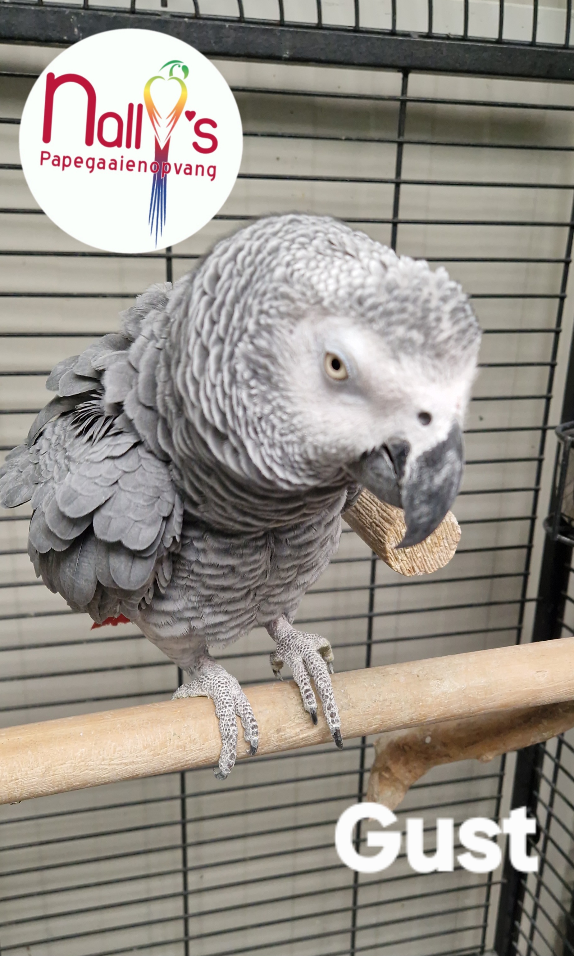 Gust is een 13 jaar oude grijze roodstaart. Eet pellets, fruit en groente. Nooit uit de kooi geweest, houd niet van de plantenspuit of douchen. Wie wil de uitdaging aan gaan met deze knappe jongen, om van hem een blije vrije grijze roodstaart te maken?