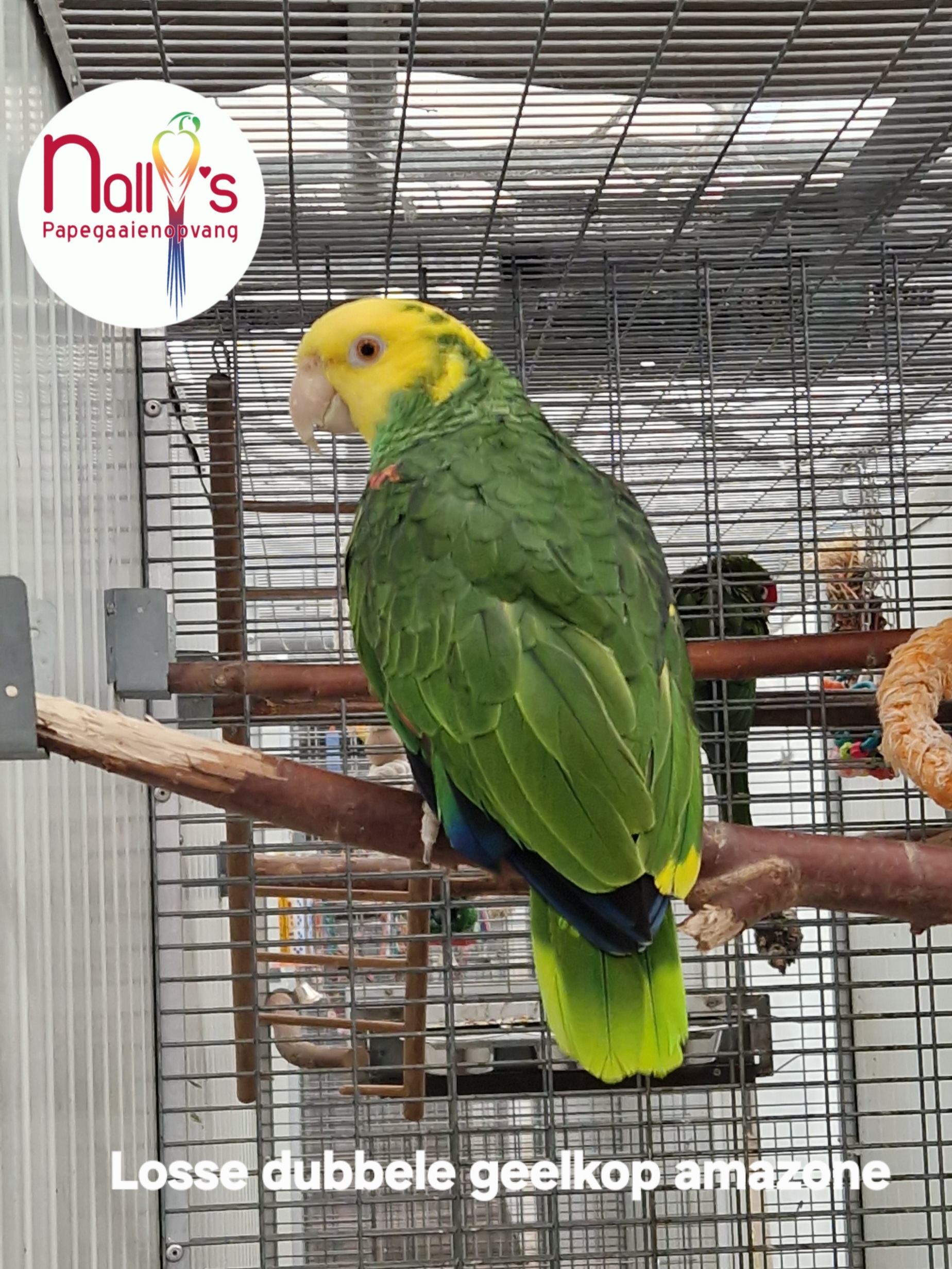 Volière : dubbele geelkop amazone.