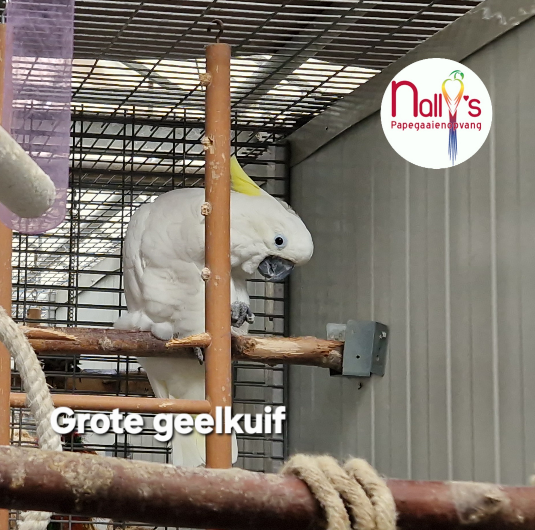 Grote geelkuif kaketoe. Geschikt voor in de volière.